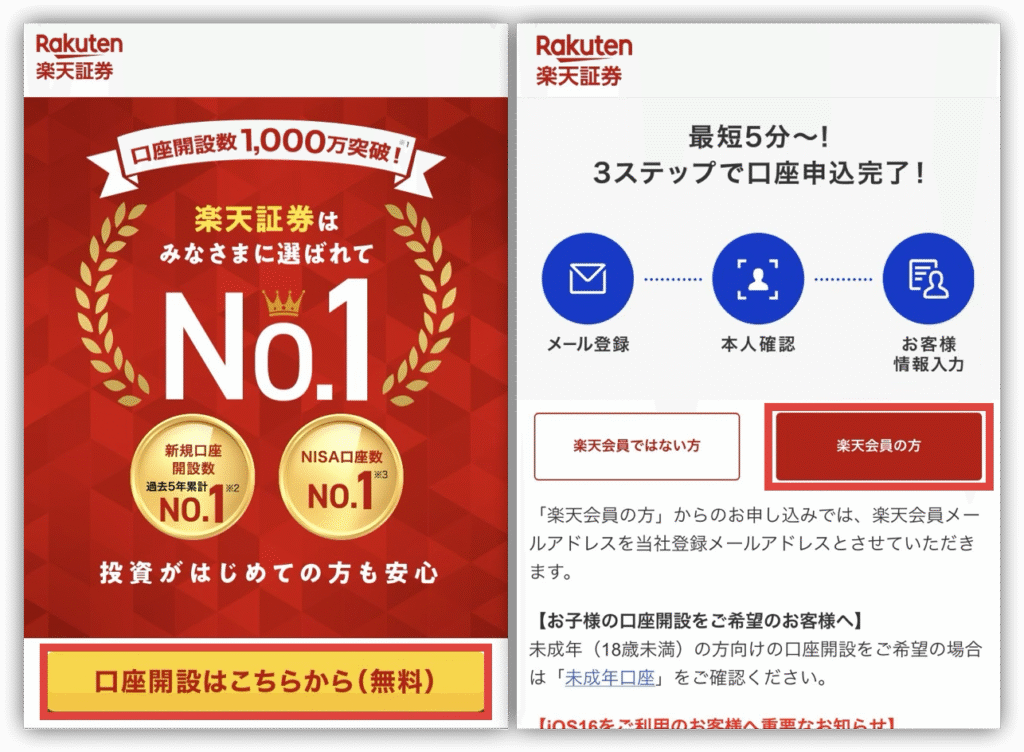 ここをタップして、今すぐに「楽天証券の口座開設方法」を確認する!