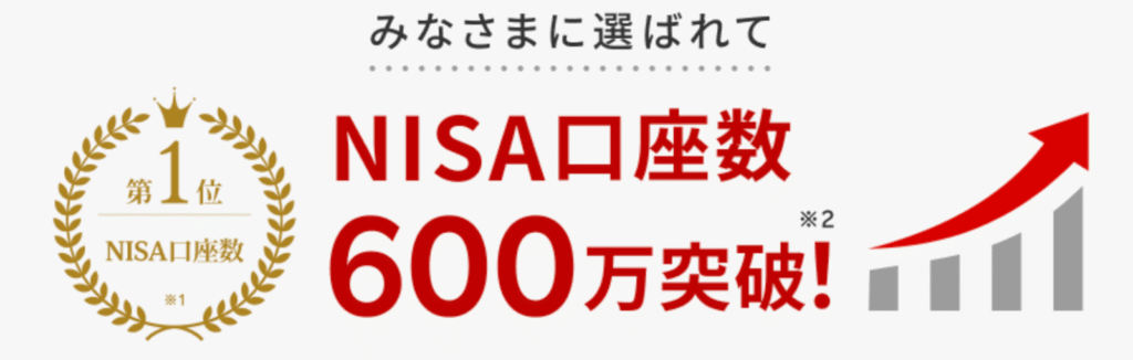 2024年12月時点では、NISA口座の開設数が600万を超えて、業界トップの実績も獲得しています😳