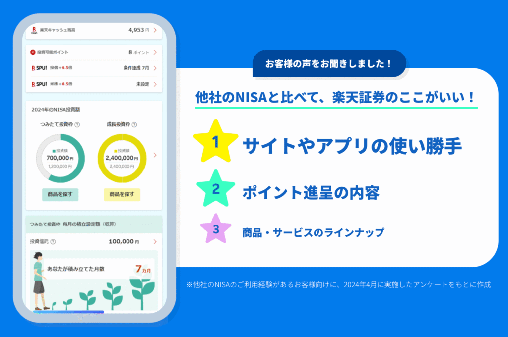 私たちも楽天のサービスをよく利用するから、楽天証券で新NISAをやってるよ✊🏻