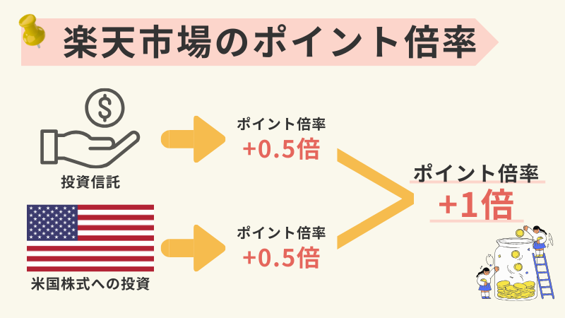 投資信託と米国株式の両方でポイント投資を活用すると、それぞれポイント倍率が+0.5倍となり、併用すると最大+1倍になります✨